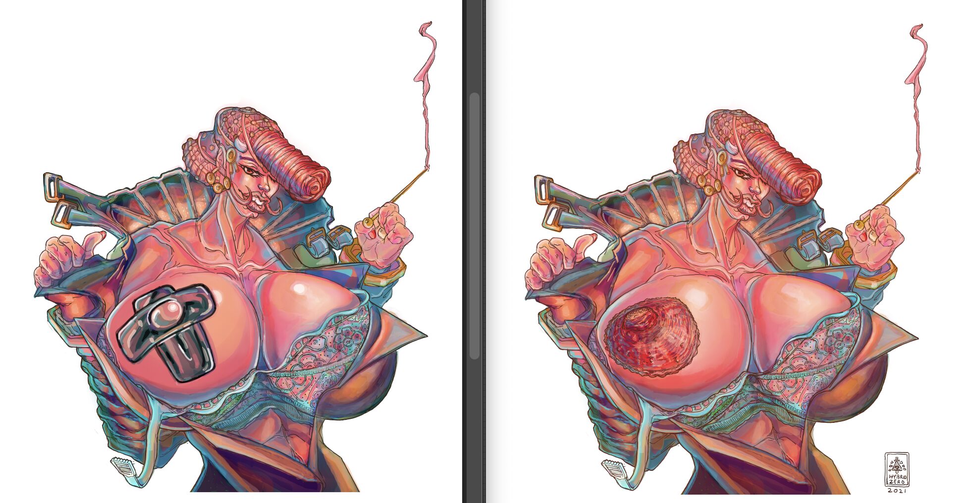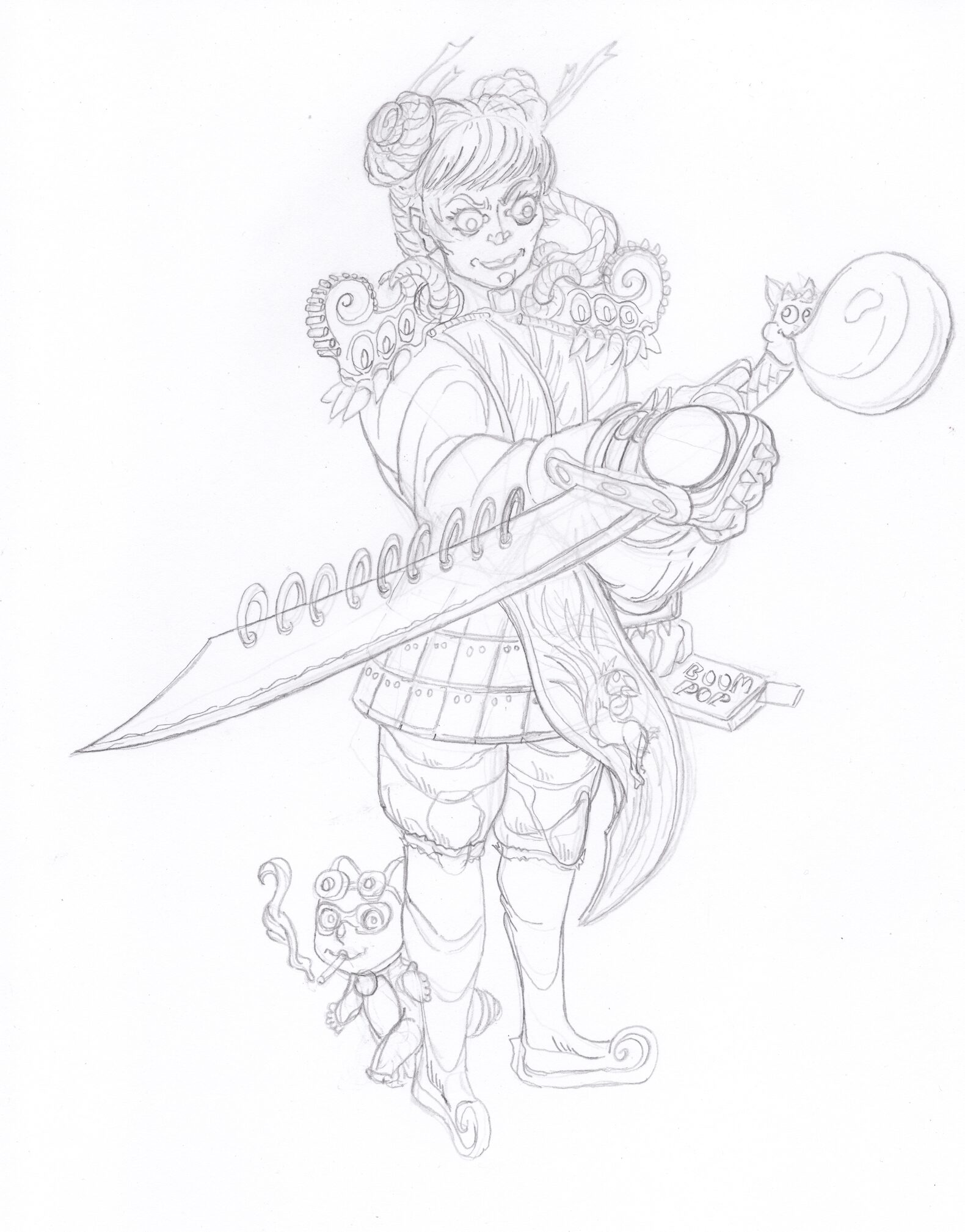 Here’s a break down of the processes of creating a piece of art from line to shadow to color.